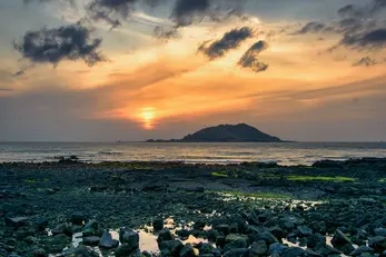 Images of Jeju Island's coastline and interior landscapes reflect the region's ecological richness and visual appeal. Volcanic rock formations, clear shorelines, and diverse vegetation characterize much of the island's environment.